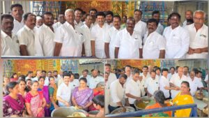 பழனியில் மாரியம்மன் திருவிழாவை முன்னிட்டு வணிகர் சங்க பேரமைப்பு சார்பில் அன்னதானம் வழங்கப்பட்டது