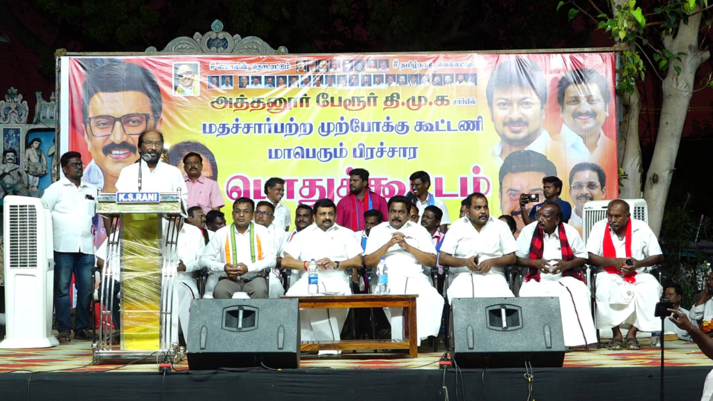 நாமக்கல் மாவட்டம் ராசிபுரம் சட்டமன்றத் தொகுதியில் மதச்சார்பற்ற முற்போக்கு கூட்டணி சார்பில் போட்டியிடும் திமுக வேட்பாளர் மா.மதிவேந்தனை ஆதரித்து கழகத் துணைப் பொதுச் செயலாளரும் மாநிலங்களவை உறுப்பினருமான திருச்சி சிவா அத்தனூர் பேரூராட்சியில் மக்களிடையே உரையாற்றி அரசின் நலத்திட்டங்களை எடுத்துக் கூறி வாக்குகளை சேகரித்தார் .