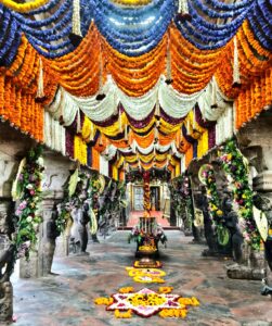 பழனி முருகன் மலைக்கோவில் சன்னதியில் பங்குனி உத்திரம் திருவிழாவையொட்டி, நேற்று பூக்களால் அலங்கரிக்கப்பட்டிருந்தனர்.