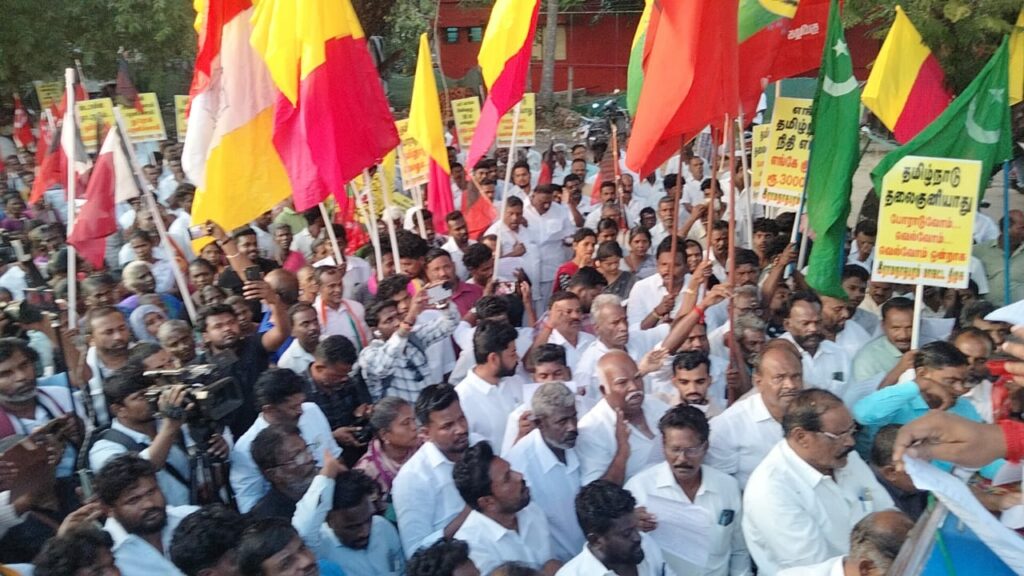 இராமநாதபுரம் மாவட்ட ஆட்சியர் அலுவலகம் முன்பு திமுக தலைமையிலான மதச்சார்பற்ற முற்போக்கு கூட்டணி கட்சிகளின் சார்பில் தமிழ்நாட்டின் உரிமைகளை பறிக்கும் ஒன்றிய பாஜக அரசின் தமிழ்நாடு பட்ஜெட்டை கண்டித்தும், அதற்கு துணைபோகும் அதிமுகவை கண்டித்தும் கண்டன ஆர்ப்பாட்டம் நடைபெற்றது. இந்த ஆர்ப்பாட்டத்திற்கு திமுக கழக மாவட்ட செயலாளரும் சட்டமன்ற உறுப்பினருமான காதர் பாட்ஷா முத்துராமலிங்கம் தலைமையேற்றார். இந்நிகழ்வில் திராவிடர் கழகத் தலைவர் கி. வீரமணி முன்னிலை வகித்து கண்டன உரையாற்றினார். தனது உரையில், ஒன்றிய அரசின் பட்ஜெட் தமிழ்நாட்டின் வளர்ச்சி, நலத்திட்டங்கள் மற்றும் மாநில உரிமைகளை பாதிக்கும் வகையில் அமைந்துள்ளதாக அவர் குற்றம் சாட்டினார். தமிழ்நாட்டின் நியாயமான பங்கு மற்றும் உரிமைகளை பாதுகாக்க அனைத்து அரசியல் மற்றும் சமூக அமைப்புகளும் ஒன்றிணைந்து குரல் கொடுக்க வேண்டியது அவசியம் என வலியுறுத்தினார். மேலும் மாநில, நகர மற்றும் ஒன்றிய கழக செயலாளர்கள், கழக முன்னோடிகள், வட்ட கழக நிர்வாகிகள், கழக உடன்பிறப்புகள் மற்றும் பொதுமக்கள் பெருந்திரளாக கலந்து கொண்டு ஒன்றிய அரசின் அநீதிக்கு எதிராக கண்டன கோஷங்களை எழுப்பினர். ஆர்ப்பாட்டம் அமைதியான முறையில் நடைபெற்றது.
