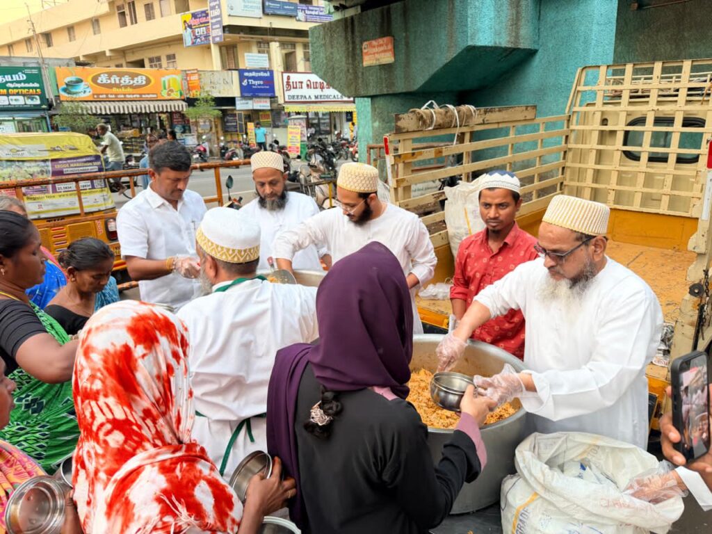 ஈரோட்டில் தாவூதிய போரா முஸ்லிம்கள் சார்பாக அப்பாஸ் ஏற்பாட்டில் ஈரோடு அரசு மருத்துவமனையில் சிகிச்சை பெற்று வரும் உள் நோயாளிகளுக்கு ரமலான் மாதத்தை முன்னிட்டு பிரியாணி வழங்கினர். இந்நிகழ்ச்சியில் ஏராளமான தாவூதிய போரா முஸ்லிம் நிர்வாகிகள் கலந்து கொண்டனர்.