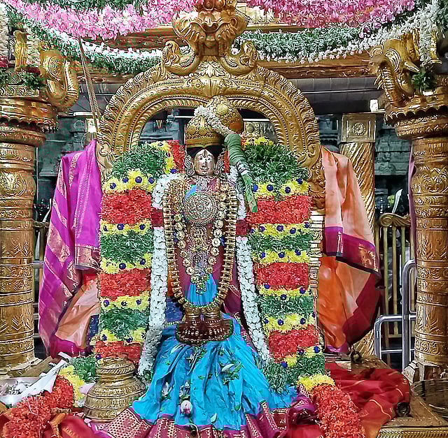 முன்னதாக, ஸ்ரீவில்லிபுத்தூர் ஆண்டாள் கோயிலில் பிரத்யேக மலர்களால் தொடுக்கப்பட்ட பிரம்மாண்ட மாலை, பட்டு வஸ்திரம், கிளி உள்ளிட்ட மங்கல பொருட்கள் ஆண்டாளுக்கு அணிவிக்கப்பட்டு சிறப்பு பூஜைகள் நடைபெற்றது.