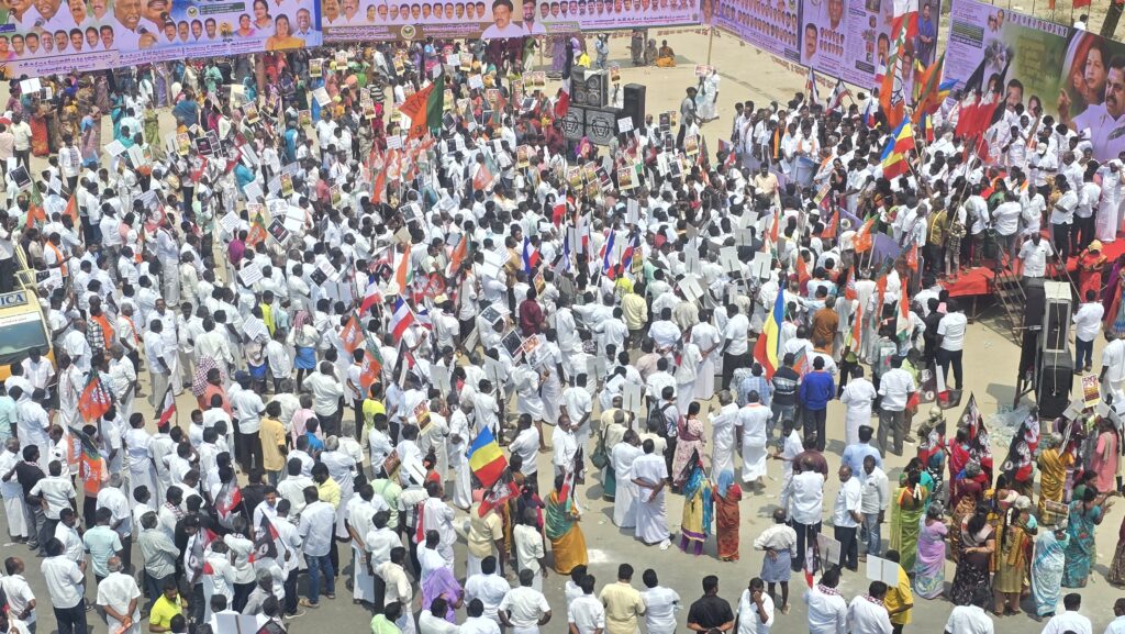 கிருஷ்ணகிரி புதிய பேருந்து நிலையம் அண்ணா சிலை எதிரே இன்று காலை தேசிய ஜனநாயக கூட்டணி சார்பில், தமிழகத்தில் தொடரும் பாலியல் வன்கொடுமைகள், கொலை, கொள்ளை, சட்ட ஒழுங்கு சீர்கேடு மற்றும் போதை பழக்கத்தை தடுக்க தவறிய, திமுக அரசை கண்டித்து ஆர்ப்பாட்டம் நடந்தது. அதிமுக மாவட்ட செயலாளர்கள் அசோக்குமார் எம்எல்ஏ, முன்னாள் அமைச்சர் பால கிருஷ்ணரெட்டி, மகளிர் அணி மாநில துணை செயலாளர் பரிதாநவாப், பாமக மோகன்ராம், பாஜக கவியரசு, தமிழ்மாநில காங்கிரஸ் ஜெயபிரகாஷ் உள்ளிட்டோர் முன்னிலை வகித்தனர். ஆர்ப்பாட்டத்தில், அதிமுக துணை பொது செயலாளர் கே.பி.முனுசாமி எம்எல்ஏ கண்டன உரையாற்றினார்.