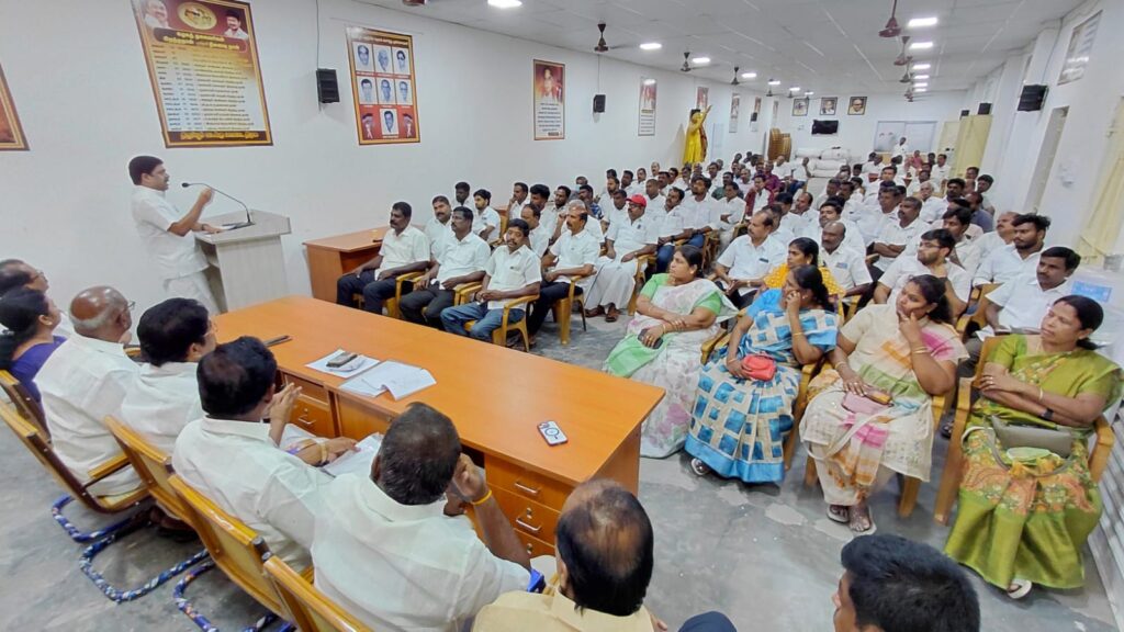 திருப்பூர் வடக்கு மாவட்ட திமுக அலுவலகத்தில் நடைபெற உள்ள சட்டமன்ற தேர்தலில் திருப்பூர் வடக்கு தொகுதியில் நிச்சயம் வெற்றி பெற்ற தர வேண்டும் என மாவட்ட பொறுப்பாளர் மேயர் தினேஷ்குமார் அறிவுறுத்தல் மாவட்ட அலுவலகத்தில் நடைபெற்ற பூத் ஒருங்கிணைப்பாளர் கூட்டத்தில் தெரிவித்தார் இந்த கூட்டத்தில் மாவட்ட நிர்வாகிகள் பகுதி செயலாளர்கள் சார்பு அணி நிர்வாகிகள் ஒன்றிய நிர்வாகிகள் பங்கேற்றனர் அலுவலகத்தில் நடைபெற உள்ள சட்டமன்ற தேர்தலில் திருப்பூர் வடக்கு தொகுதியில் நிச்சயம் வெற்றி பெற்ற தர வேண்டும் என மாவட்ட பொறுப்பாளர் மேயர் தினேஷ்குமார் அறிவுறுத்தல் மாவட்ட அலுவலகத்தில் நடைபெற்ற பூத் ஒருங்கிணைப்பாளர் கூட்டத்தில் தெரிவித்தார் இந்த கூட்டத்தில் மாவட்ட நிர்வாகிகள் பகுதி செயலாளர்கள் சார்பு அணி நிர்வாகிகள் ஒன்றிய நிர்வாகிகள் பங்கேற்றனர்