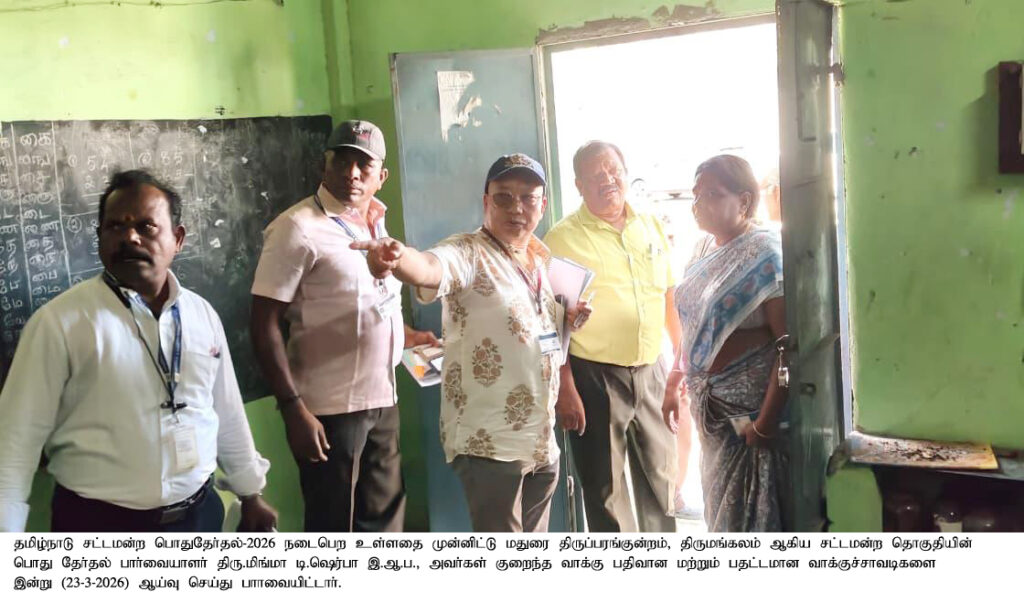 மாவட்டச்-செய்திகள் திருமங்கலம் மற்றும் திருப்பரங்குன்றம் சட்டமன்ற தேர்தல் பொது பார்வையாளர் அவர்கள் வாக்குப்பதிவு மையத்தில் ஆய்வு செய்த புகைப்படம் Spread the love Post navigation Previous பழனி அருகே திமுக பிரமுகர் வீட்டில் வருமான வரி துறையினர் சோதனை நடத்தினர்Next ஹார்முஸ் ஜலசந்தியை கடந்த மேலும் 2 இந்திய எரிவாயு கப்பல்கள் More Stories மாவட்டச்-செய்திகள் நீலகிரியில் ரூ.2.59 கோடி பணம், தங்கம் பறிமுதல்.. சுற்றுலா செல்பவர்கள் கவனமுடன் செயல்பட எச்சரிக்கை! மாவட்டச்-செய்திகள் போத்தனூர் – கரூர் புதிய ரயில் பாதை: சேலம் கோட்டத்திற்கு பயணிகள் சங்கம் விடுத்துள்ள முக்கிய கோரிக்கை! மாவட்டச்-செய்திகள் பழனி அருகே திமுக பிரமுகர் வீட்டில் வருமான வரி துறையினர் சோதனை நடத்தினர்