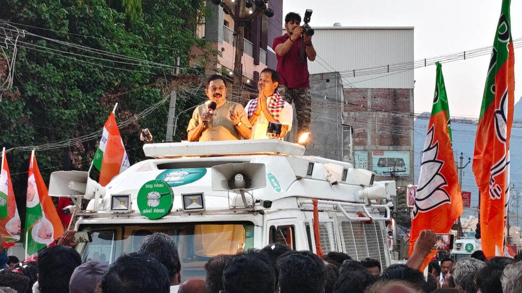 தேனி மாவட்டம் போடிநாயக்கனூர் சட்டமன்ற தொகுதி அ.தி.மு.க வேட்பாளர் வி.டி.நாராயணசாமியை ஆதரித்து, கூட்டணியில் உள்ள அ.ம.மு.க. பொது செயலாளர் டி.டி.வி.தினகரன்போடி நகர் பகுதியில் உள்ள தேவர் சிலை அருகில் தேர்தல் பிரச்சாரம் செய்தார்.