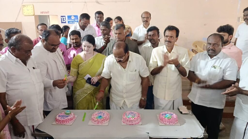 மாவட்டச்-செய்திகள் பழனி அருகே, வயலூரில் நலன் காக்கும் ஸ்டாலின் மருத்துவ முகாமின் நிறைவு நாள் நிகழ்ச்சியில், அமைச்சர் அர.சக்கரபாணி, டாக்டர்களுடன் கேக் வெட்டி கொண்டாடினார் Spread the love Post navigation Previous ‘ஓபிஎஸ் எழுதியுள்ள துரோக வரலாற்றை மக்கள் ஒருபோதும் மன்னிக்கப் போவதில்லை’ – கவுதமிNext பழனியில் உலக நன்மைக்காக மகா ருத்ர யாகம் More Stories மாவட்டச்-செய்திகள் வடகாடு ஊராட்சியில் உணவுத்துறை அமைச்சர் அர.சக்கரபாணி -க்கு பாராட்டு விழா. மாவட்டச்-செய்திகள் உலகத் தாய் மொழி தினத்தினை யொட்டி மதுரை சேதுபதி மேல்நிலைப்ள்ளியில் நட்சத்திர நண்பர்கள் அறக்கட்டளை மற்றும் நக்கீரர் தமிழ்ச் சங்கம் சார்பில் நடைபெற்ற விழாவில் பத்திரிகையாளர் என்.ராஜபாண்டியன் எழுதிய “தகவல் தரும் தலையங்கம்” நூலை நட்சத்திர நண்பர்கள் அறக்கட்டளை நிறுவனர் டி.குருசாமி வெளியிட மேனாள் காவல் உதவி ஆணையர் மணிவண்ணன் பெற்றுக் கொண்டபோது எடுத்த படம். விழாவில் முக்கிய பிரமுகர்கள் கலந்து கொண்டனர். மாவட்டச்-செய்திகள் இராமநாதபுரம் மாவட்டம், போகலூர் ஊராட்சி ஒன்றியம், எஸ்.கொடிக்குளம் கிராமத்தில் செய்தி மக்கள் தொடர்புத் துறையின் சார்பில் நடந்த தமிழ்நாடு அரசின் சாதனை விளக்க புகைப்படக் கண்காட்சியை பொதுமக்கள் பார்வையிட்டனர்.