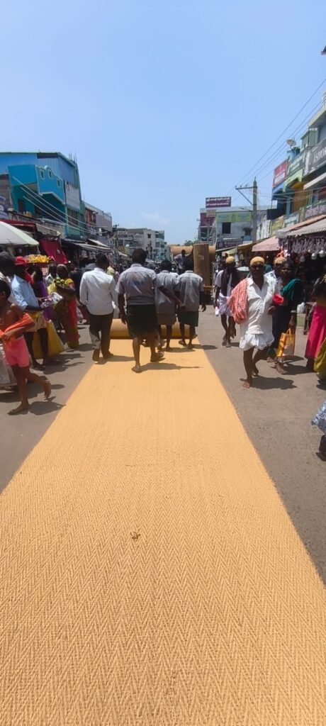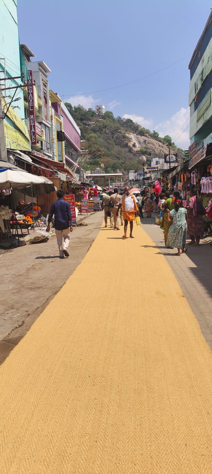 மாவட்டச்-செய்திகள் பழனி சன்னதி வீதியில், பங்குனி உத்திர பக்தர்களின் வசதிக்காக, கோடை காலத்தை முன்னிட்டு, கோடைகால வெப்பம் தாக்காமல் இருக்க, நடைபாதையில் கயிறினால் ஆன விரிப்புகள் போடப்பட்டது. Spread the love Post navigation Previous பழனி முருகன் கோவில் பங்குனி உத்திரம் திருவிழாவில் நேற்று திருத்தேரோட்டம் நடைபெற்றது Next பழனி பங்குனி உத்திரம் திருவிழாவையொட்டி, பக்தர்களுக்கு நீர் மோரினை கோவில் நிர்வாக அதிகாரி மாரிமுத்து வழங்கினார். திருக்கோயின் இச்செயலுக்கு ஆயிரக்கணக்கான பக்தர்கள் பாராட்டு தெரிவித்தனர் More Stories மாவட்டச்-செய்திகள் *நாமக்கல் மாவட்டம், இராசிபுரம் சட்டமன்ற தொகுதி திமுக வேட்பாளர்/ அமைச்சர் மா. மதிவேந்தன் தனது மனுவை, இராசிபுரம் சட்டமன்ற தொகுதி தேர்தல் நடத்தும் அலுவலரிடம் தாக்கல் செய்தார். திமுக அரசின் சிறப்பு வாய்ந்த மக்கள் நலத்திட்டங்கள் மற்றும் கூட்டணி பலம் ஆகியவை தங்களுக்கு வெற்றியை தேடி தரும் என நம்பிக்கை தெரிவித்தார்*. மாவட்டச்-செய்திகள் இராசிபுரம்: 5 ஆண்டு சாதனையை பட்டியலிட்ட அமைச்சர் மா.மதிவேந்தன்… மாவட்டச்-செய்திகள் திருப்பூர் நடைபெற உள்ள சட்டமன்றத் தேர்தலில்