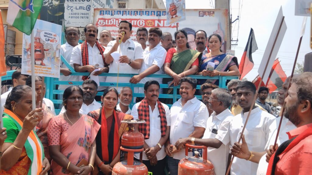 திருப்பூர் வடக்கு மாவட்ட திமுக வடக்கு மாநகரம் பாண்டியன் நகர் பகுதி கழகம் சார்பில் பாண்டியன் நகர் பஸ் நிறுத்தம் அருகில் மத்திய பாஜக அரசின் தவறான வெளியுறவுக் கொள்கையாலும், போதிய முன்னெச்சரிக்கை நடவடிக்கை எடுக்காததாலும் ஏற்பட்டுள்ள சமையல் எரிவாயு தட்டுப்பாட்டைக் கண்டித்தும், தமிழ்நாட்டைத் தொடர்ந்து வஞ்சித்து வரும் மத்திய அரசு கூட்டணியையும் கண்டித்து ‘மதச்சார்பற்ற முற்போக்குக் கூட்டணி’ சார்பில் மாபெரும் கண்டன ஆர்ப்பாட்டம் பகுதி செயலாளர் வெ. ஜோதி தலைமையிலும் வடக்கு