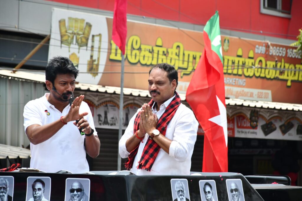 முத்துராஜாவை ஆதரித்து துணை முதல்வர் உதயநிதி ஸ்டாலின் புதுக்கோட்டை திலகர் திடலில் பிரச்சாரம் மேற்கொண்டார். அப்போது,