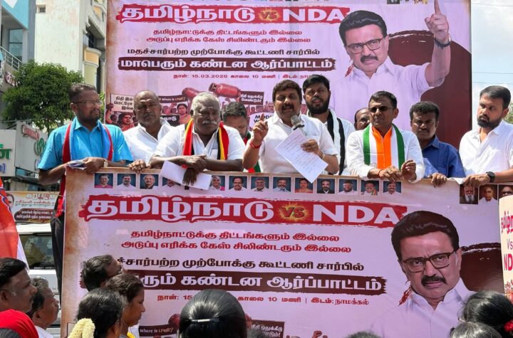 நாமக்கல் பிஎஸ்என்எல் அலுவலகம் அருகே நடைபெற்ற போராட்டத்திற்கு மாநிலங்களவை உறுப்பினர் கே ஆர் என் இராஜேஷ்குமாரும் , ராசிபுரம்...