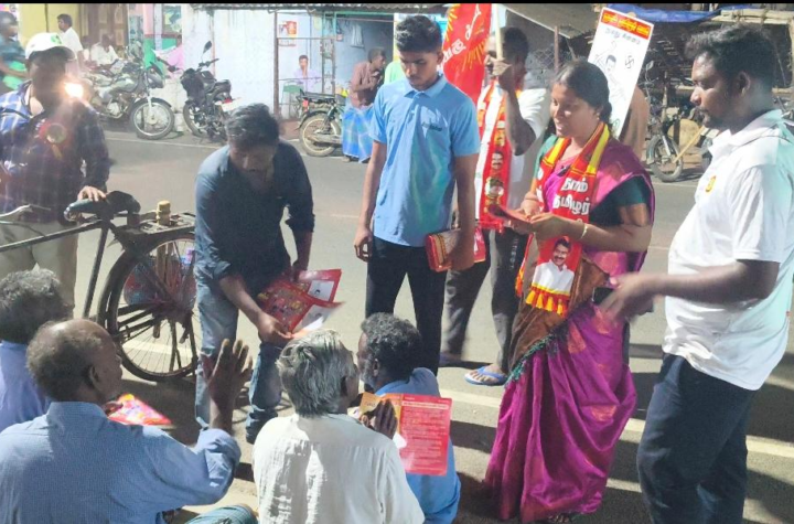 வீதி வீதியாக சராசரி மக்களை சந்தித்து எங்களுக்கு ஒரு வாய்ப்பு கொடுங்கள் என துண்டு பிரச்சுரங்கள் வழங்கி வாக்கு...