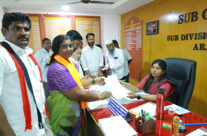 politics புதுக்கோட்டை மாவட்டம் அறந்தாங்கி சட்டமன்ற தொகுதியில் தேசிய ஜனநாயக கூட்டணில் போட்டியிடும், பாரதிய ஜனதா கட்சியின் வேட்பாளர், கவிதா ஸ்ரீகாந்த் தேர்தல் நடத்தும் அலுவலர் அபிநயா-விடம் வேட்புமனு தாக்கல் செய்தார்.