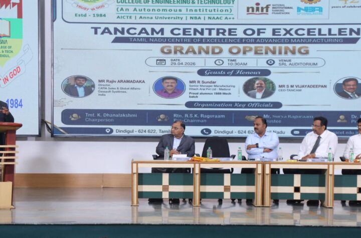 திண்டுக்கல்.ஏப்.30-திண்டுக்கல் பி.எஸ்.என்.ஏ பொறியியல் மற்றும் தொழில்நுட்பக் கல்லூரி வளாகத்தில், (டார்ன்காம்) மேம்பட்ட உற்பத்திக்கான சிறப்பு திறன் மையம் இயந்திரவியல்...