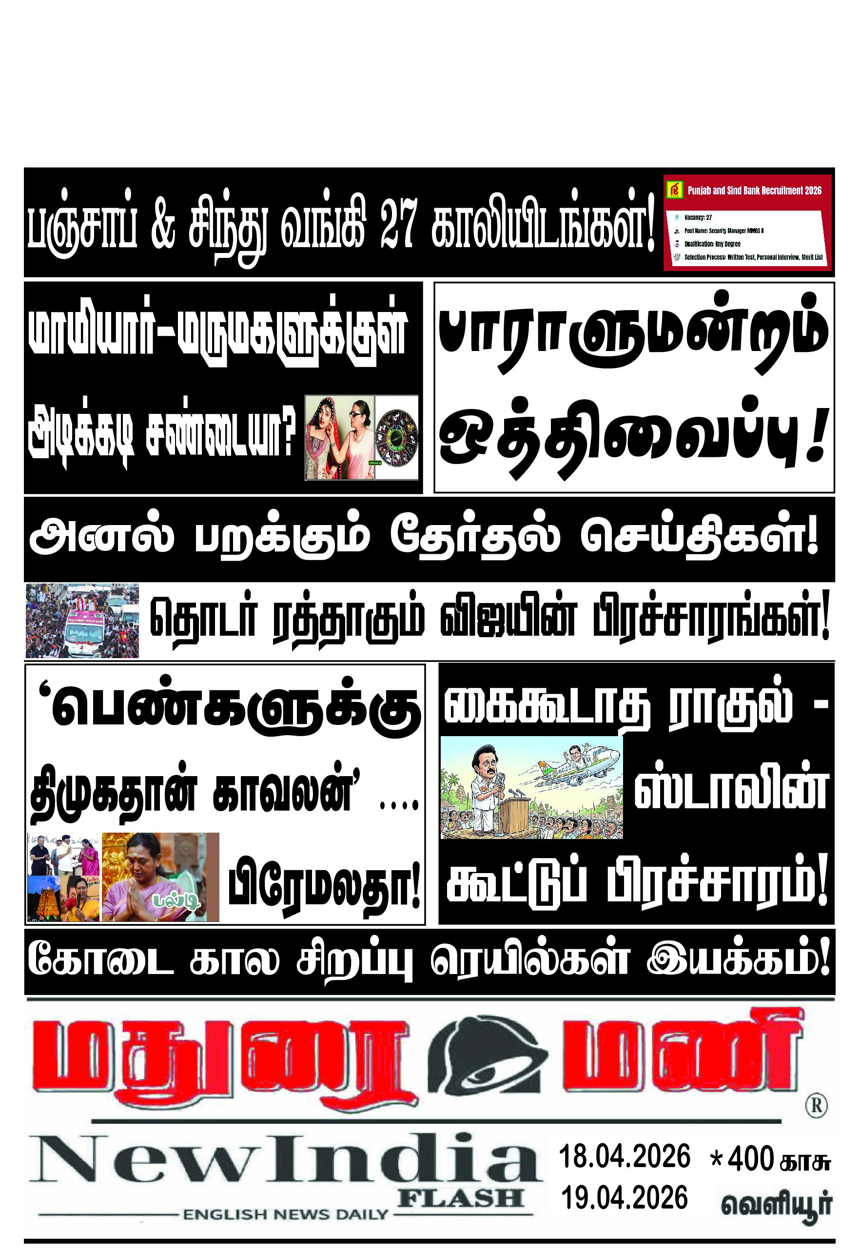E-Paper Spread the love Post navigation Previous “சபரீசன் ‘சூப்பர் சிஎம்’ ஆக செயல்படுகிறார்” – அண்ணாமலை குற்றச்சாட்டுNext “தமிழகத்தை டெல்லியில் இருந்து ஆள நினைக்கும் பாஜக முயற்சி ஒருபோதும் பலிக்காது” – பொன்னேரியில் ராகுல் காந்தி பேச்சு More Stories E-Paper E-Paper E-Paper