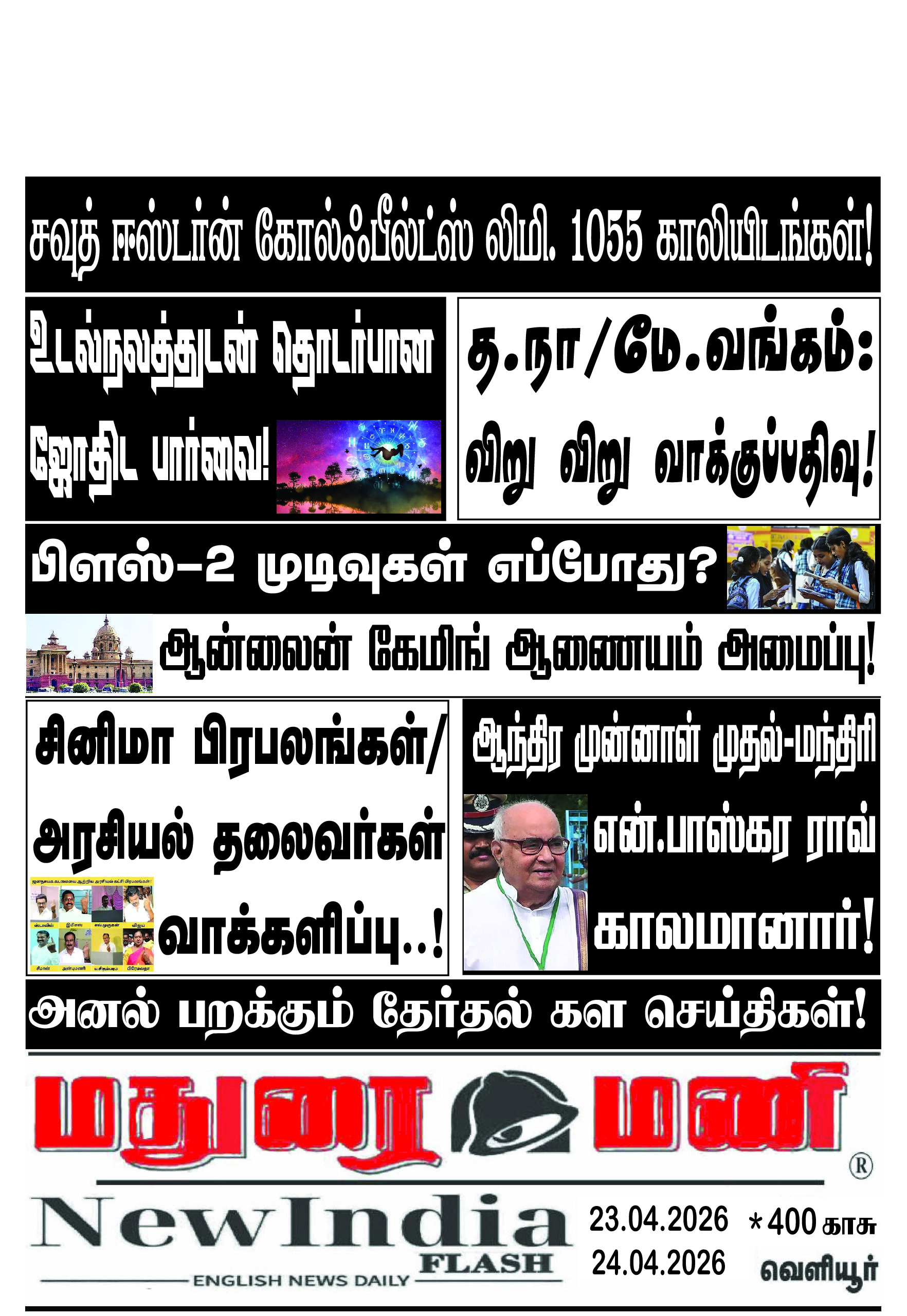 E-Paper Spread the love Post navigation Previous “யார் ஆட்சிக்கு வந்தாலும்…” – வாக்களித்த பின் நடிகர் சிவக்குமார் வைத்த கோரிக்கைNext பிற்பகல் 1 மணி நிலவரம்: தமிழக சட்டப்பேரவைத் தேர்தலில் 56.81% வாக்குப் பதிவு More Stories E-Paper E-Paper E-Paper